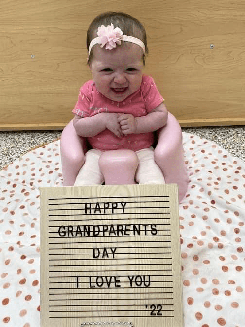 I don’t want to forget to tell you about my visit last night from Claire, Brenden and Abigail. We had a good time sharing the baby and quite a lot of fun writing a children’s book together. It’s tentatively called “Little Abigail’s Big Head.” (Title and book inspired by Abigail’s head size which is 98% plus) 🤣 Claire’s parents are book publishers and will be binding it into a children’s book once the book is completed. We’ve asked Jake, who is a graphic designer, to take our pictures of Abigail and blow her head up to different sizes, getting bigger and bigger as we reach the end of the book. Claire‘s father, Barry, has suggested that we print it on cardboard,which I think is delightful. Claire’s mother, Vicki, pretends to be very upset about how we are sure to give little Abigail a complex about her big head. I think she’s enjoying the fun and jest just as much as we are. I’ll be sure to post a link to the book once it’s done. In the meantime, I got a lovely note from Abigail since today is apparently grandparents day.