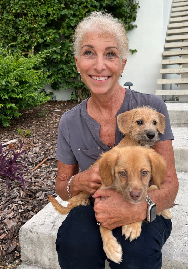 More good news. While we were out at Home Depot getting some plants, I got a text from Shona from Underdog Rescue at Florida asking if I could take a couple puppies from a litter of five  that were turned into Animal Services. Much to my surprise and delight, Hans agreed that we could take two and we quickly drove to get them. I took the only girl and one of the boys and Hans named them Penelope and Paddington. They were very stinky and required immediate bathing. Both were angels in the wash tub and seemed to enjoy the blow drying!  Though they were very shy initially, they have already come out of their shells and run up to us with lots of kisses and cuddles.