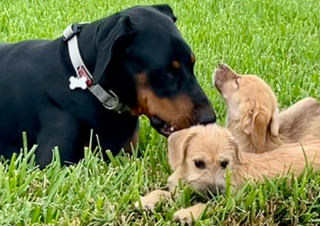 Knowing that fostering makes me so happy, my partner Hans has given me the gift of his time and efforts to care for the puppies when I cannot. I have never raised little dogs, especially Doxy/terrier mixes before. All my small breed foster puppies were placed in forever homes at eight or nine weeks old. Watching these two grow and learn has been a treat.