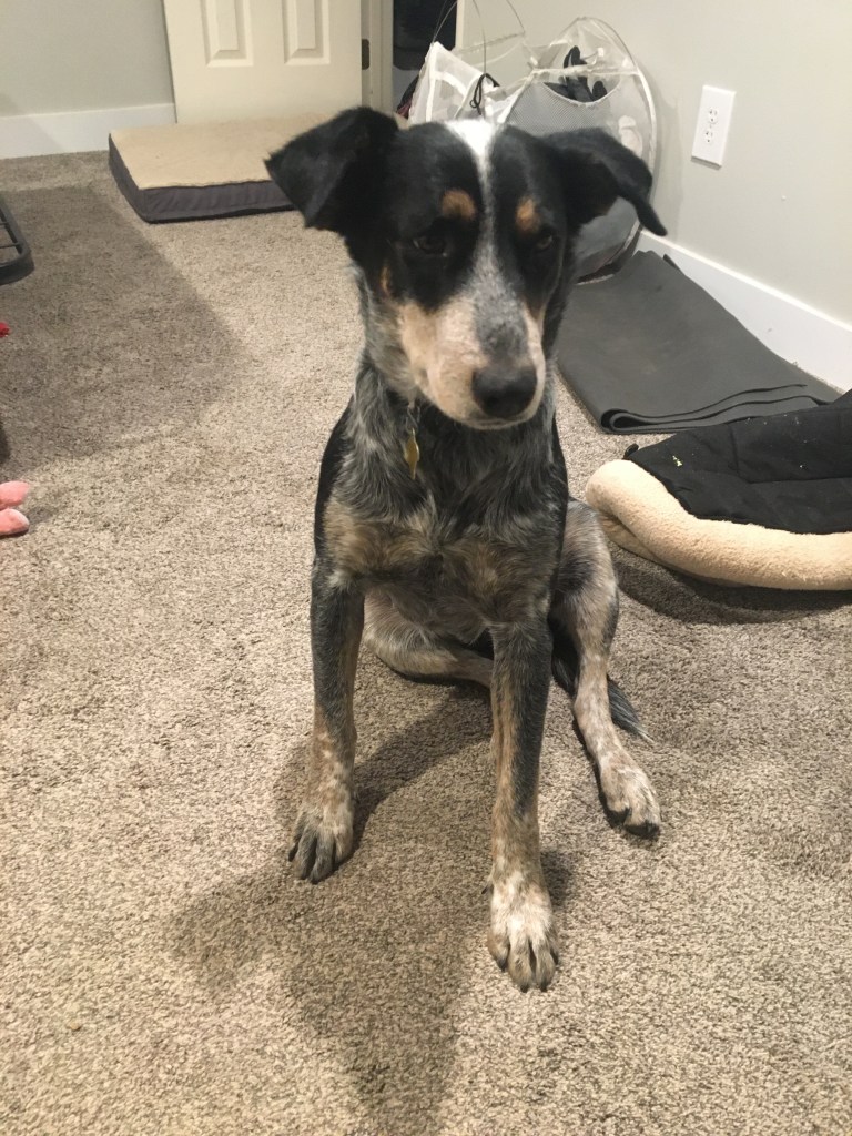 Zach is adopting a dog today. Her name is Mamma Maya. This poor mommy dog was a stray and gave birth to eight puppies under a random shed. The puppies have all been placed, and Maya has been in a great foster home. She is housebroken, crate, trained, very loving and even likes cats 🙂 she does have trust issues as one would expect and will need a patient and loving home while she develops her confidence.