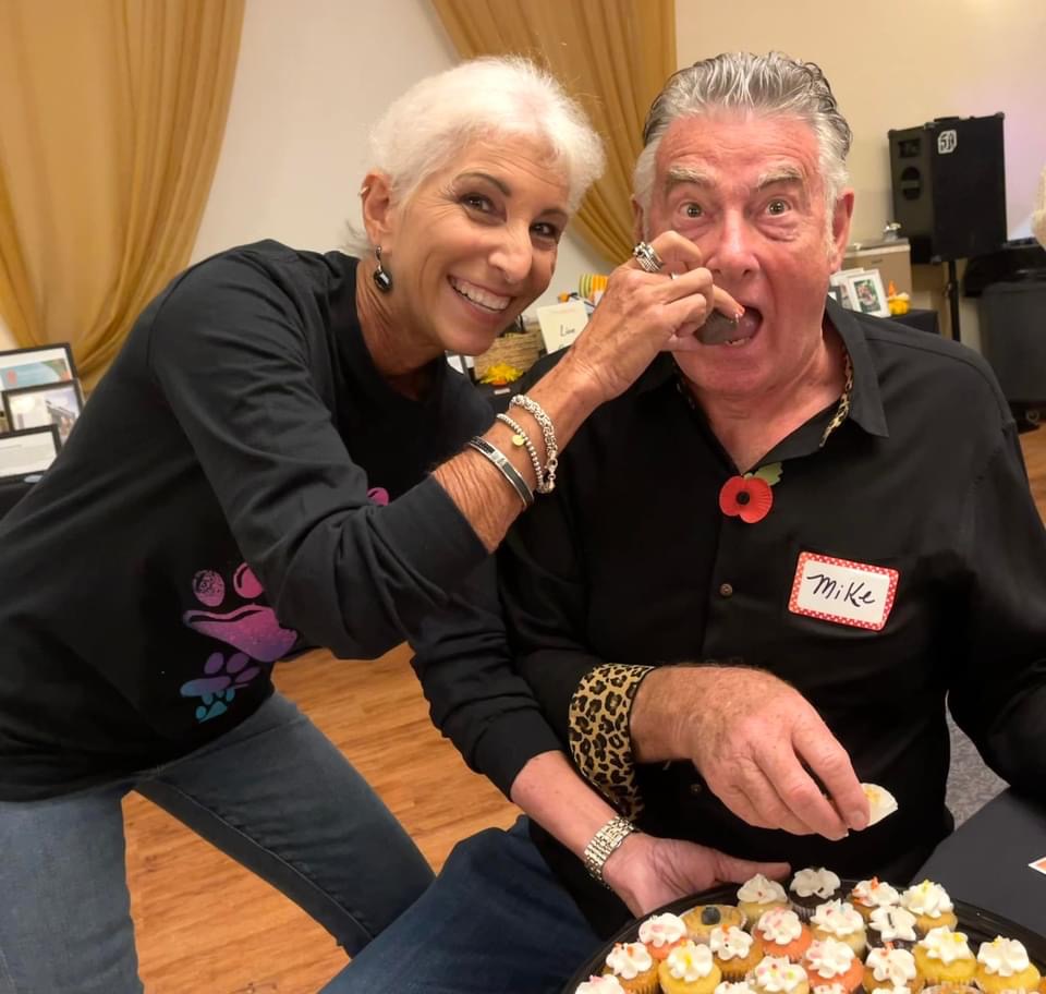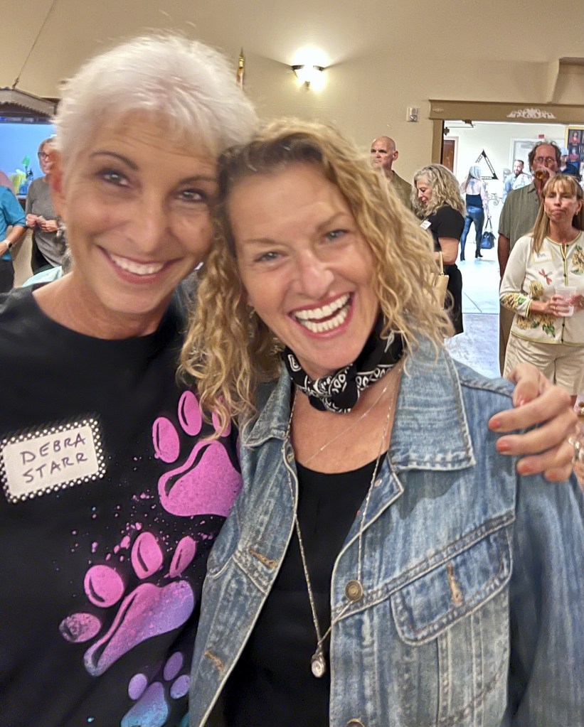We had a lot of fun and helped raise much needed funds . Hans and I bid many items up and then dropped out but we did walk away with a tray of desserts (see photo above) which I passed out to our tables first and then gave to our neighboring tables to enjoy. The mini cupcakes were moist and delicious. Hans bought a painting by Mark Barons who painted 5500 shelter dogs. (We are now members of the Collectors Circle. )