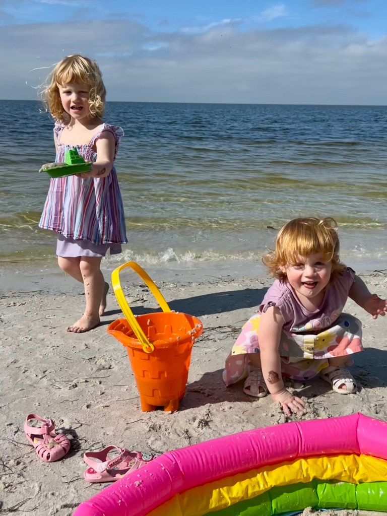 Happy Thanksgiving. This morning we have seen dolphins, played with Kittens and taken the girls to the beach at Emerson point where we played the sand and they waded in the water