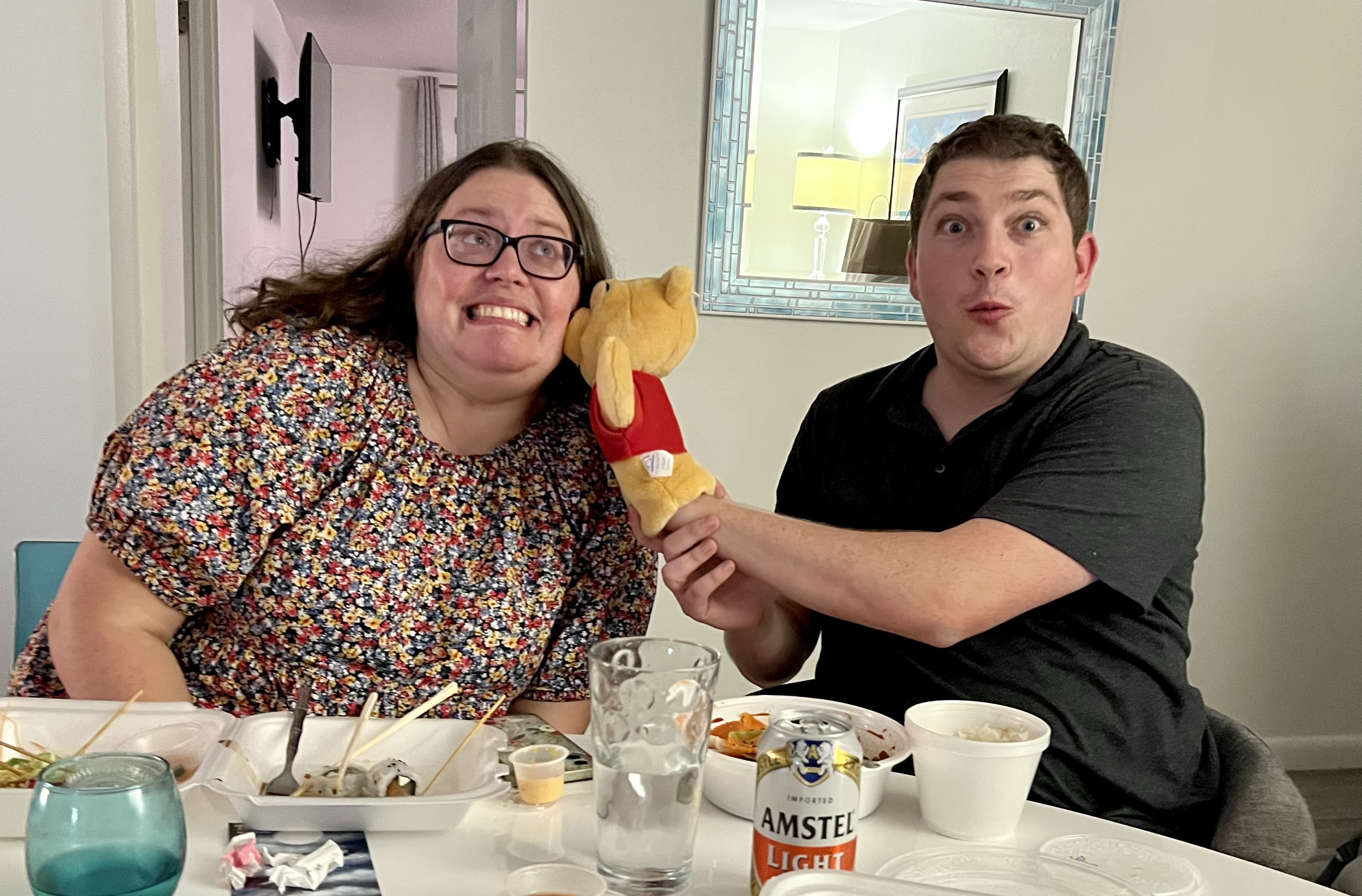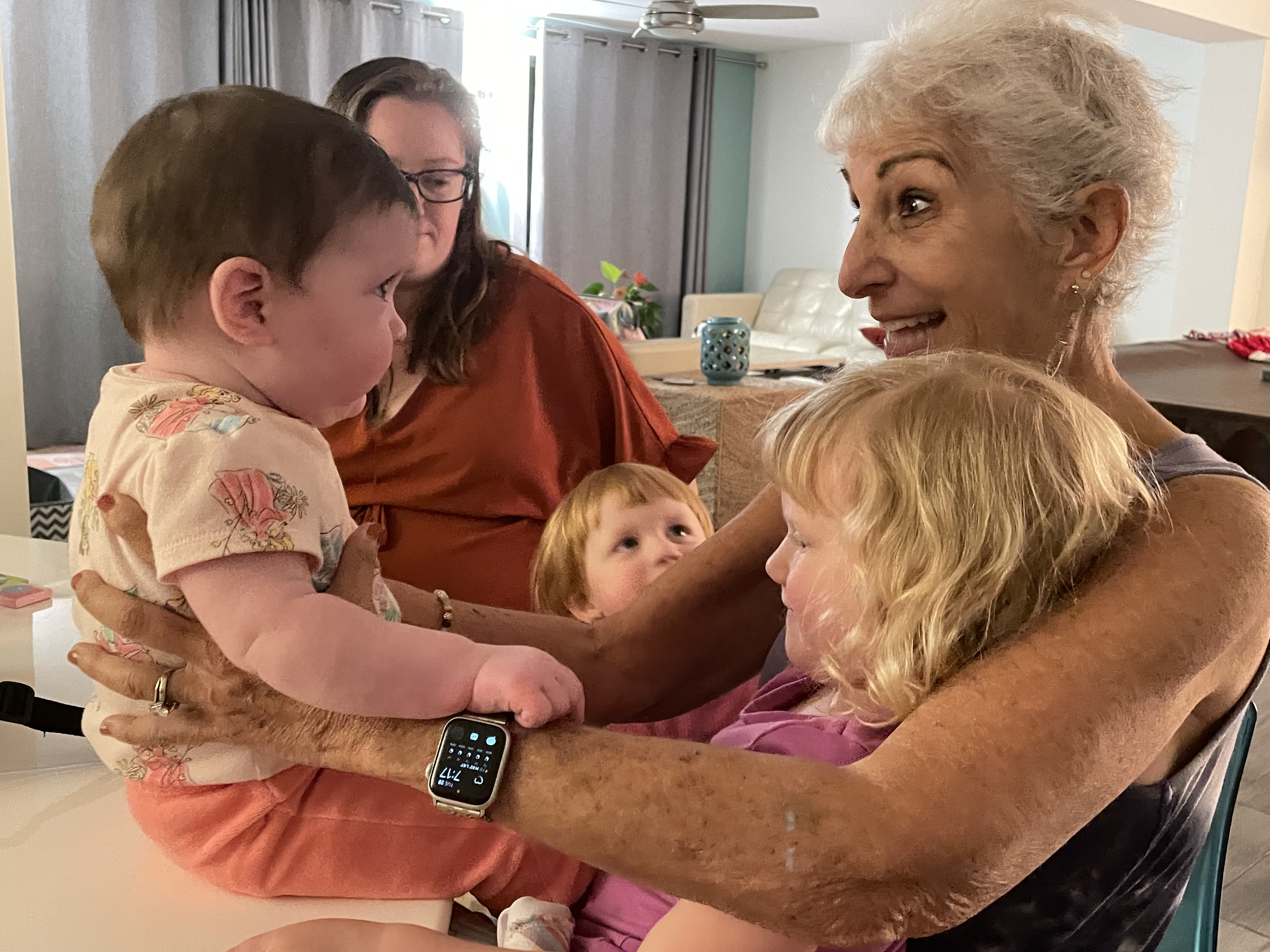 What a fun, silly night we had tonight when Brenden, Claire and Abby came over to meet Annelise and the girls. We ate Thai takeaway and lots of pretend cake and cookies which Autumn served In the form of The Wall Street Journal and puzzle pieces. The older girls loved baby Abigail who was fascinated with the little humans.