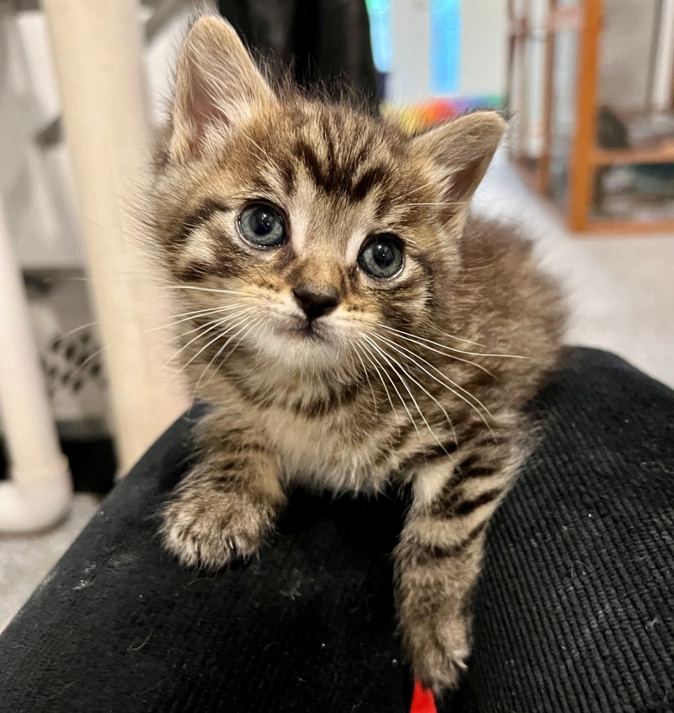A good portion of every day is spent with my fosters. Like music, animals can have a profound effect on our well-being. A study by the NIH found that playing with pets increases the levels of the feel-good chemicals serotonin and dopamine in your brain. According to research, social interaction with your dog or cat increases the feel-good chemical oxytocin, which lifts your spirits. Additionally, pets can help reduce stress. One study of 240 married couples found lower heart rates and blood pressure among those with pets than those without. Which leads me to cute photo of the day…..