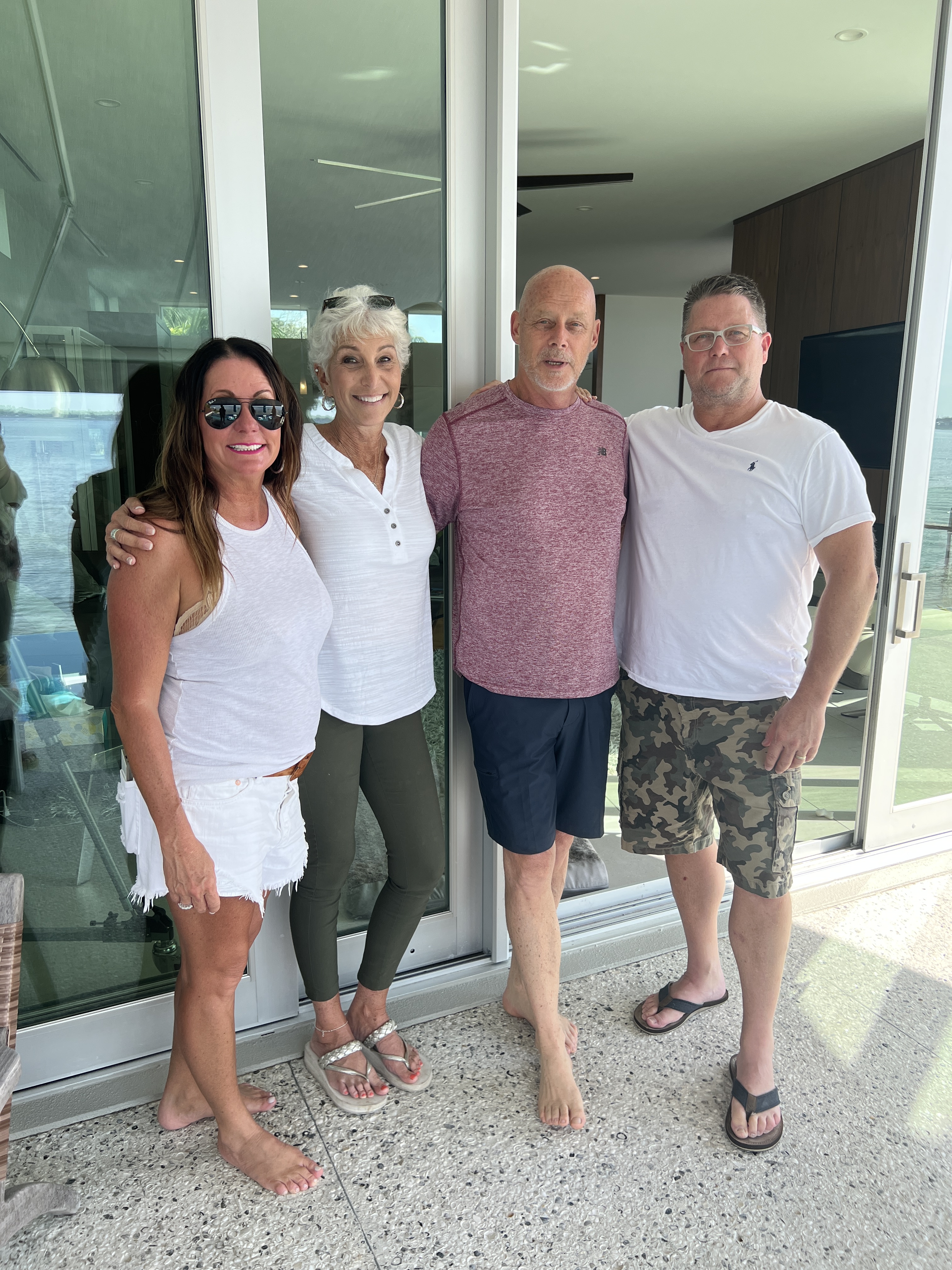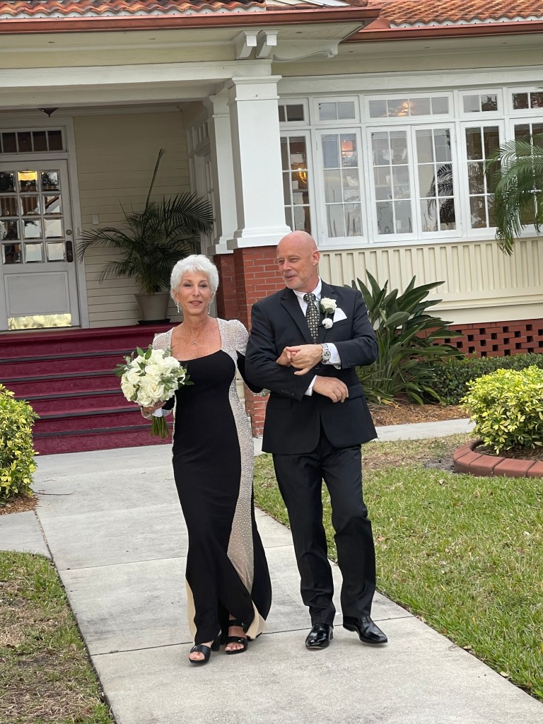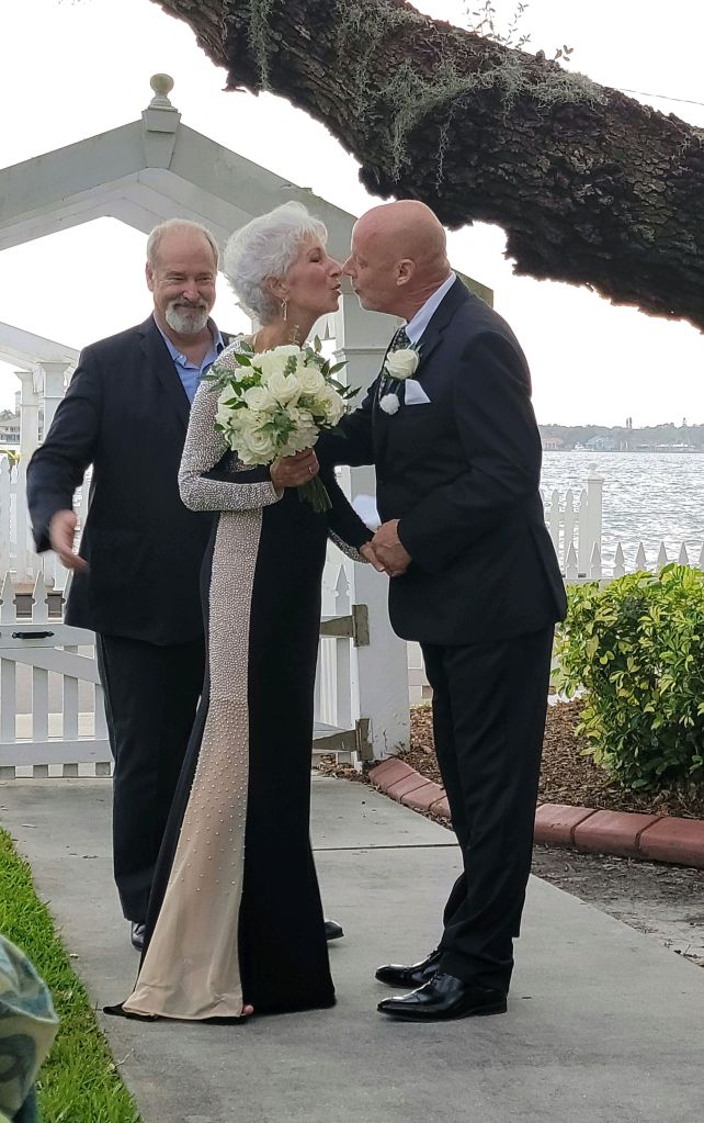After the ceremony, we all went to the outdoor patio where Hans and I formally welcomed our guests. The pre-dinner gathering unfolded just I had hoped it would. Each guests shared a moving, usually funny anecdote. Ever practical Pam had lamented photos to go along with her story. (She’s a thinker and had realized that they would get wrinkled otherwise on their trip from Wisconsin to Florida). Stories were sometime interactive with comments from the “peanut galley” tossed in. Everyone spoke from their hearts and the intimacy and love flowed as freely as all the champagne and wine we were enjoying.