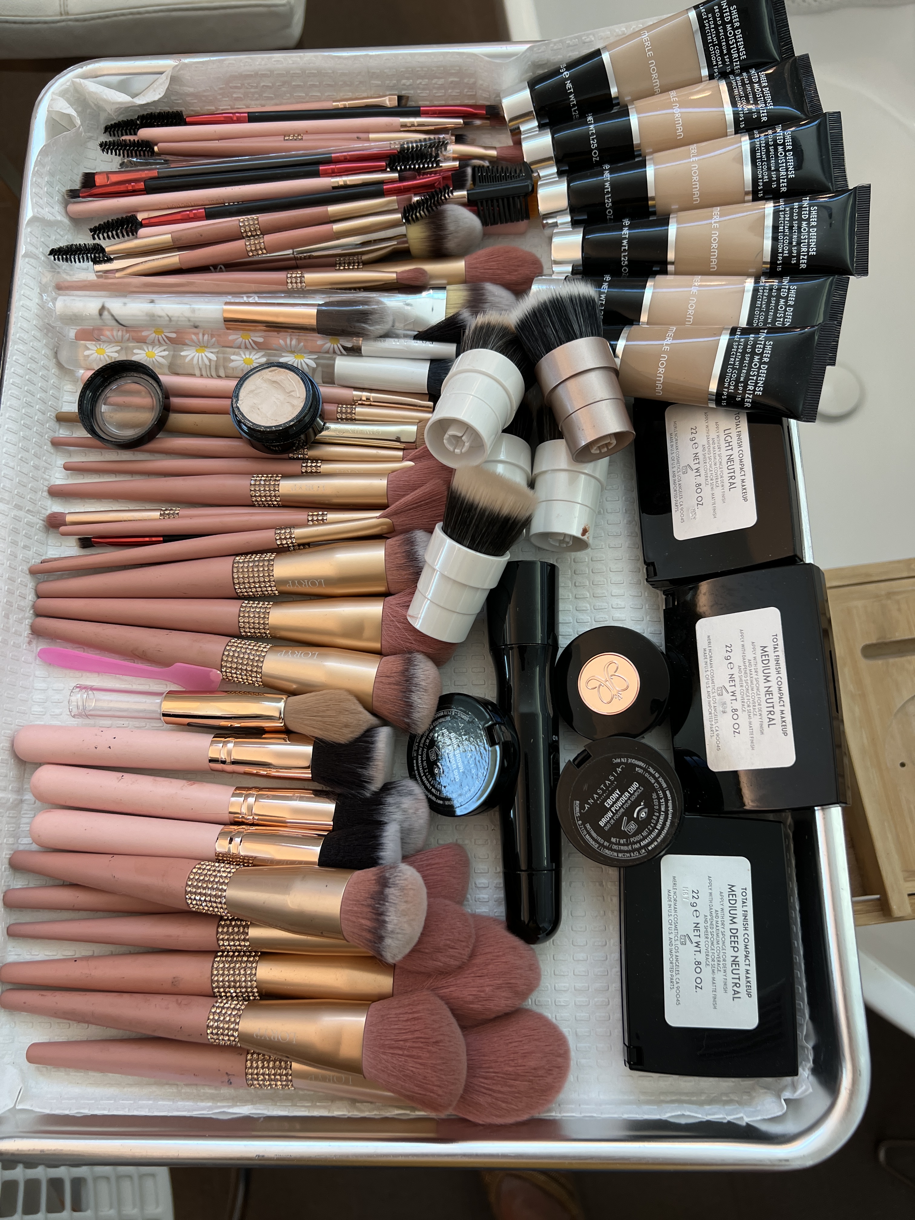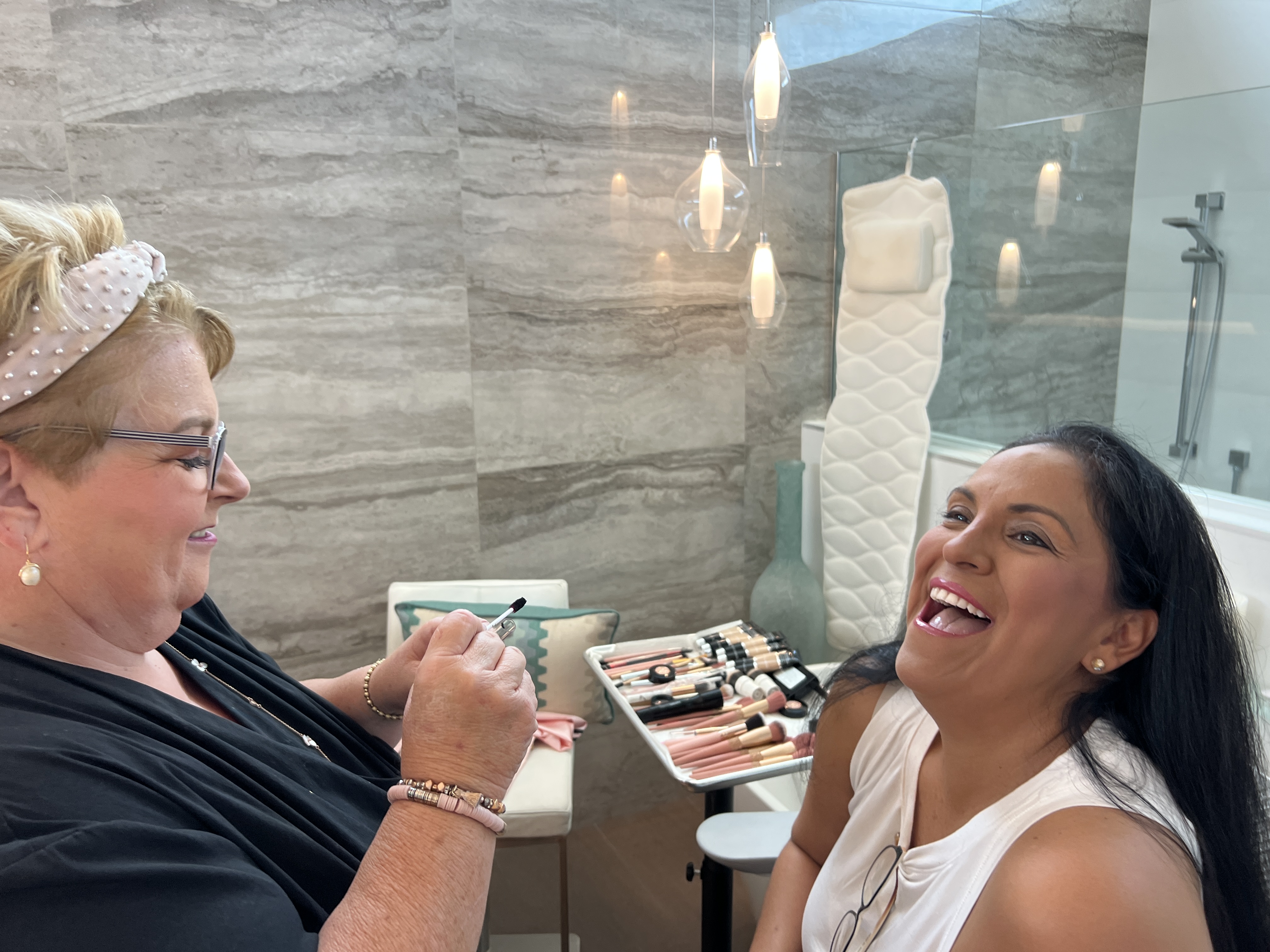 The day was all I had hoped it to be. I dropped Delilah off at Bishop early and after an expert hair styling by the lovely and talented, Sondra, picked Judith up, and was home by 10 am. To my delight, Dollface make up artist, Felicia, was already set up in the master bathroom, the tools of her trade spread out and organized like a beauty buffet.