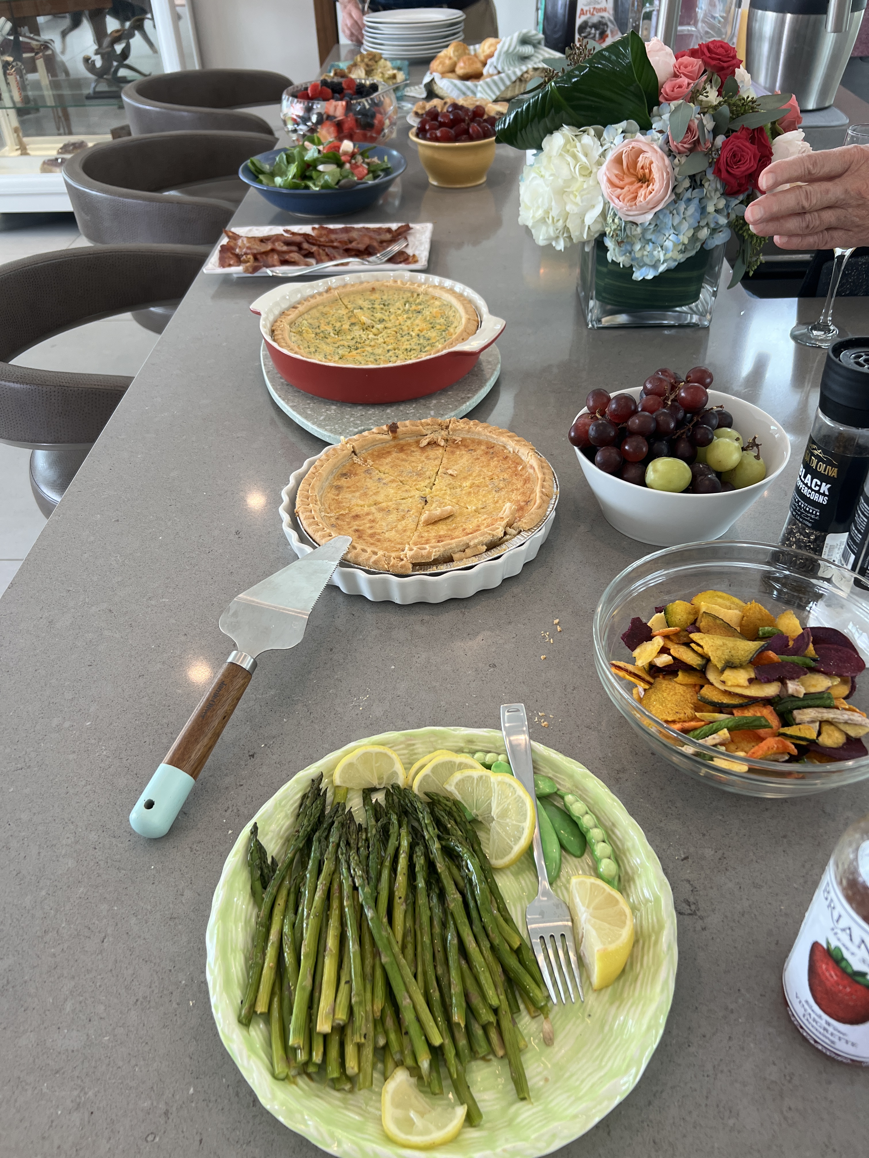 I still feel strong this morning and full! Becky and Tom brought brunch over…Quiches, fruit and more. Our out of towners joined us for yet another toast and delicious meal and kittens!