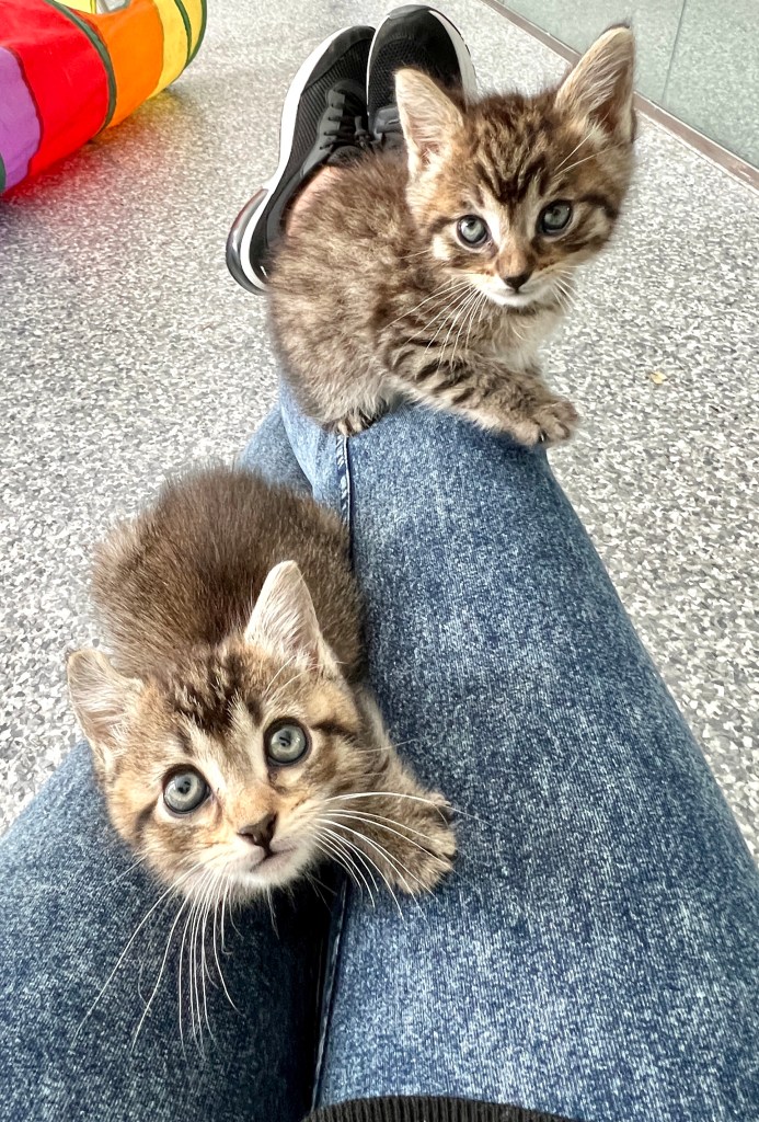 The kittens continue to grow and get sweeter every day. We spend time in the gym area together where I hold them belly up or rub noses with them. This has been an effective technique to developing affectionate felines and it certainly seems to be working with these three.