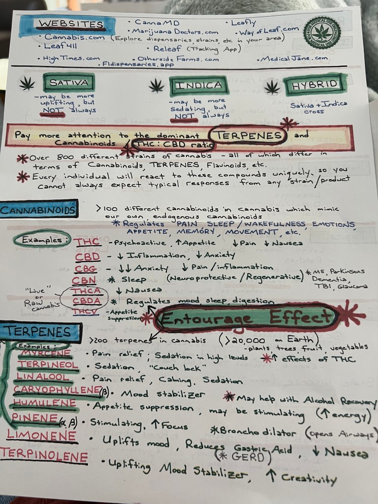 Before I leave this subject, I want to share this handout from the Cannabis Dr office.