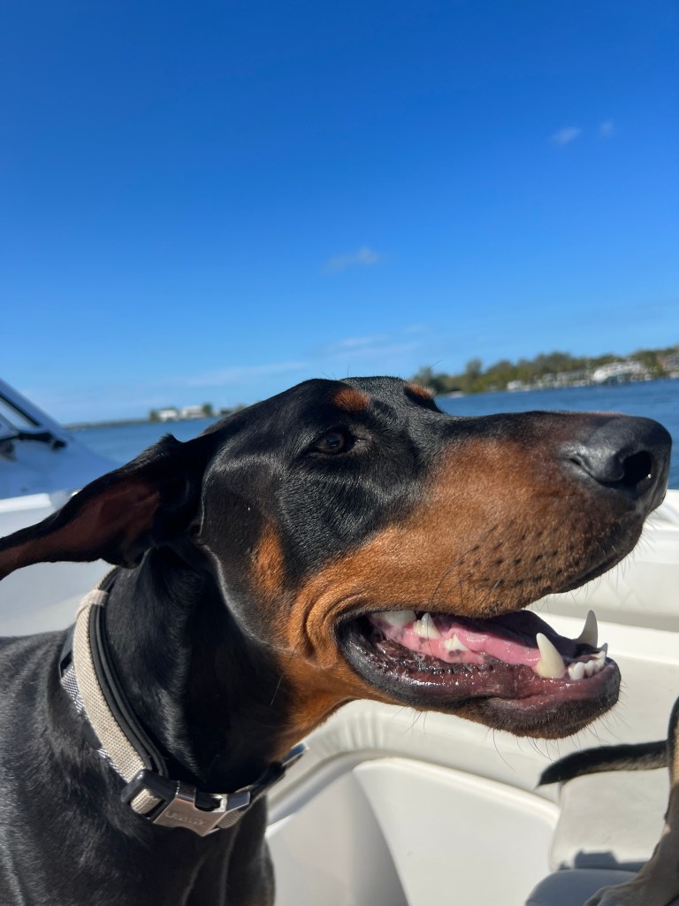 To celebrate, Hans and I took our boat out. Roxy clamored aboard which encouraged Baxter to do the same. His first boat ride! The dogs chewed the air, ears flapping, noses enjoying the scents on the breeze.
