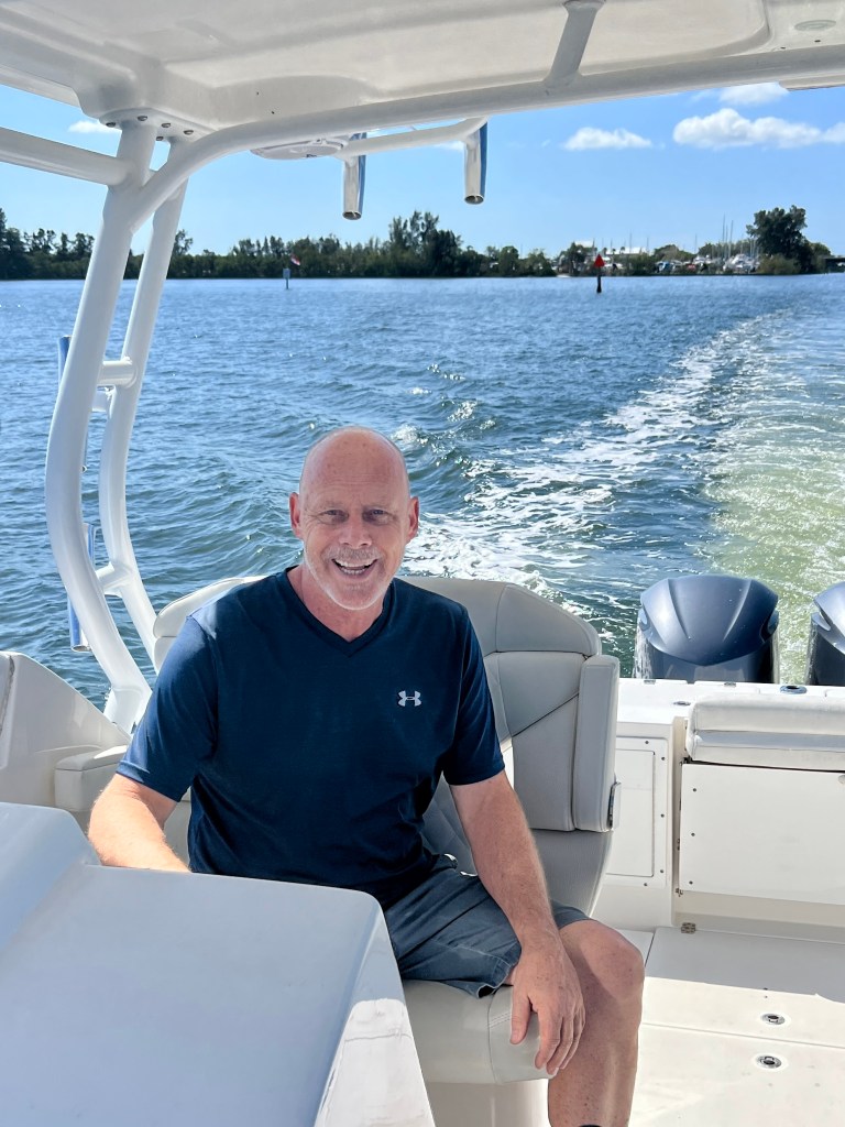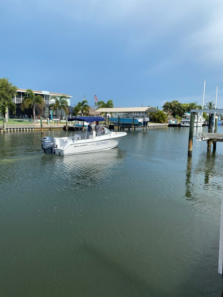 As we passed the canal where my dad lived, I found myself remembering stories of my dad and his boat. Shortly after he got a boat, his younger sister, Shirley gave him a custom embroidered hat that read “Captain Irving.”