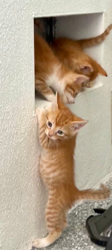 But fear not, I did find happiness today. Despite my tacit agreement with RSO to sit completely still, I prodded and urged my body downstairs for a visit with the orange kittens three. Once seated on a yoga mat, I told Alexa to play James Taylor and turned to watch the kitten show.